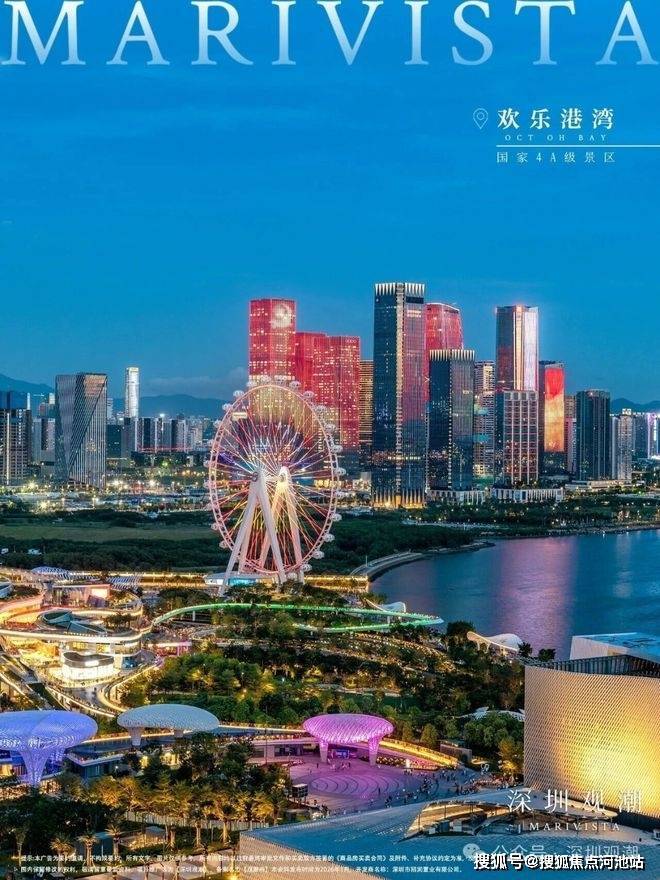 一、核心地标:南向正席,网红生活主场 项目南向直面欢乐港湾,80万㎡滨海文化公园(2025年全运会闭幕式举办地)举步即达。这里汇聚湾区之光摩天轮、湾区之声演艺中心、庆典广场等顶流地标,钟书阁、网红餐饮等业态已落地,日常散步、亲子游玩、休闲打卡无需远行,下楼即享滨海网红生活。