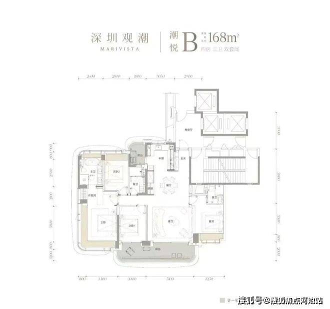 建面约168㎡四房三卫双套间