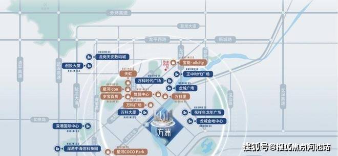 1公里内聚合行政集群(20+政务机构)、商务高地(万科/珠江等超百万方写字楼)、文化地标(25万㎡三馆一城)及七大商圈(万科广场、宝能all city等)