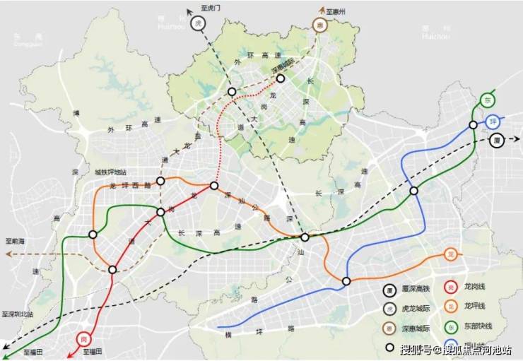 深大城际:该线路预计2026年开通,起自坪山聚龙站,终至宝安T4枢纽,线路全长约 69.2 km,线路设计速度为 160 km/h。