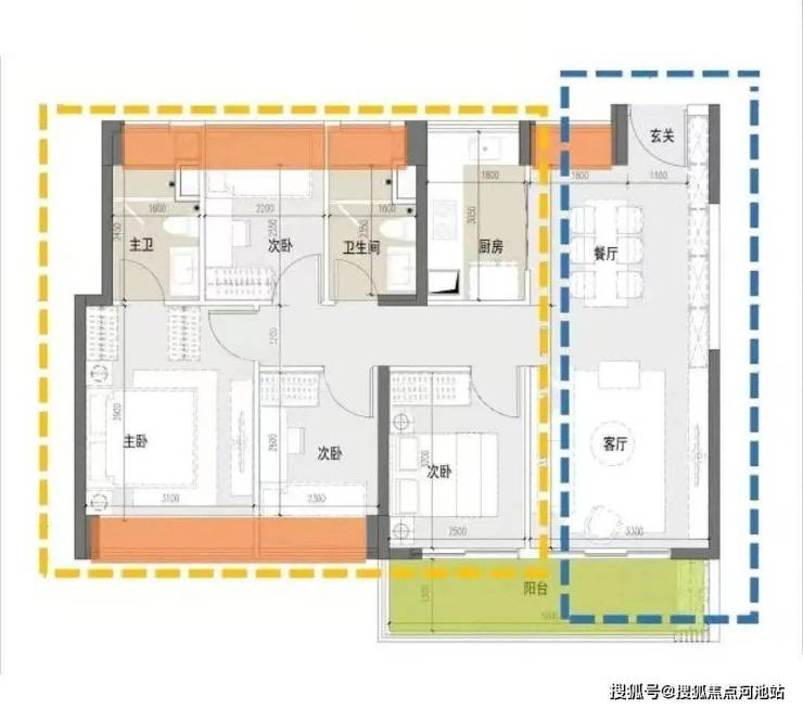 建面约117m²户型享双开间阔景阳台,收藏加倍阳光风景,打造孩子的阳光书吧、太太的花园、先生的休闲场。