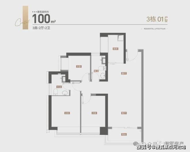 01-04户型100平3房2,05-06户型120平4房2卫,4梯6户,层高3.1米。