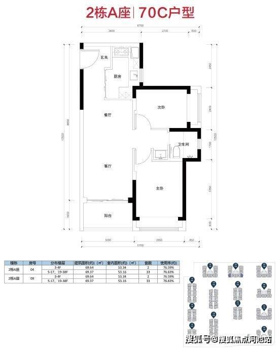 主要分为70A/70B/70C三个户型: