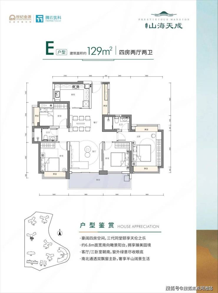 🏠 瞰海高层:约89-129㎡3-4房,2梯3户/2梯4户,精装准现房