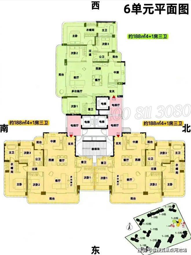 专梯入户设计:以2T2户/3T3户为主,大户型独门独户设计,私密性和尊贵感拉满。