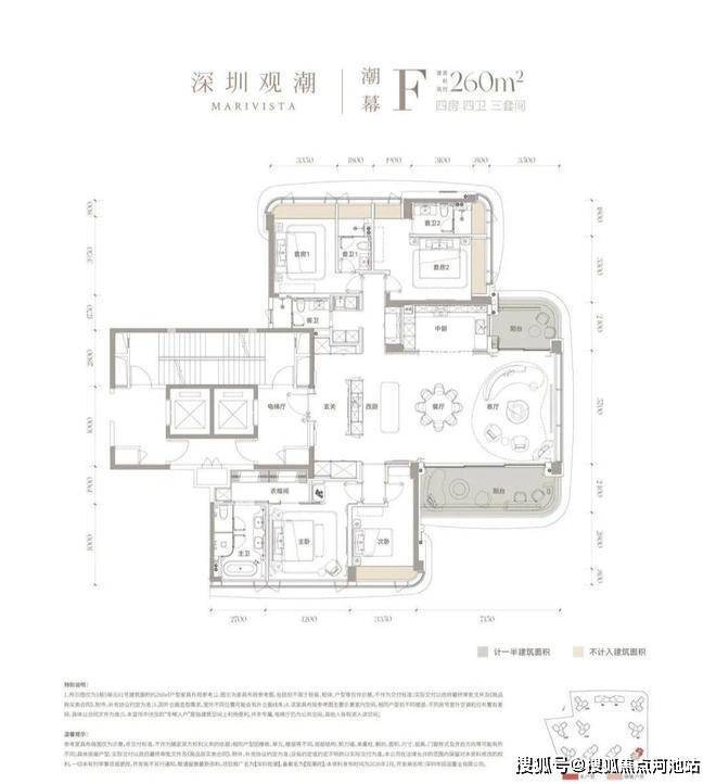深圳观潮项目楼栋采用点式分布,楼体限高80米,户型采用新规设计,得房率接近100%。