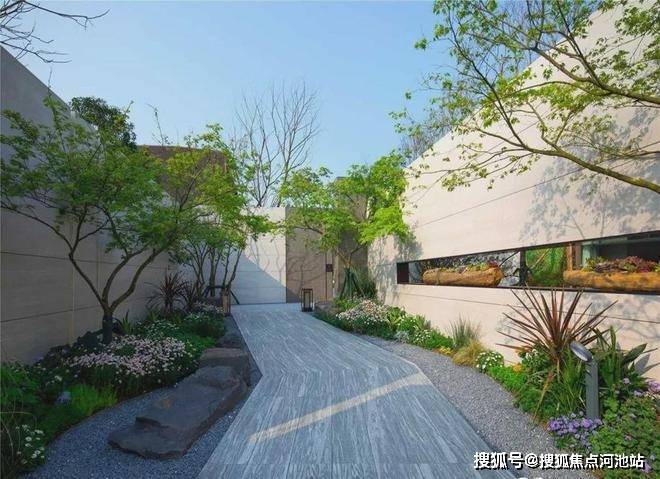 瀚府项目打造日式园林景观,布置有罗汉松、小叶紫檀等名贵树种,配置各式枯山水小景,游乐、休憩、眺望平台步入园林之中,形成一种独特的一步不一样的观赏动线,丰富业主未来的生活。