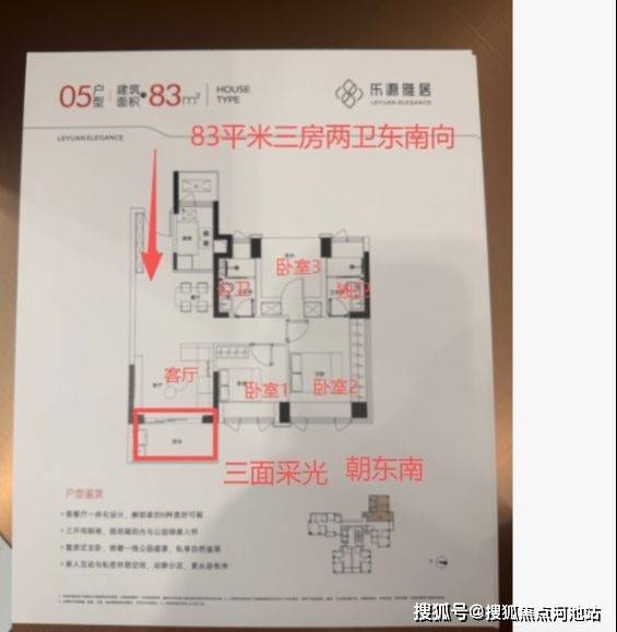 【05户型】83m²阔绰3房2卫朝东南向 客厅带阳台 客厅带阳台 卧室2带个独立卫生间折后总价540万-560万