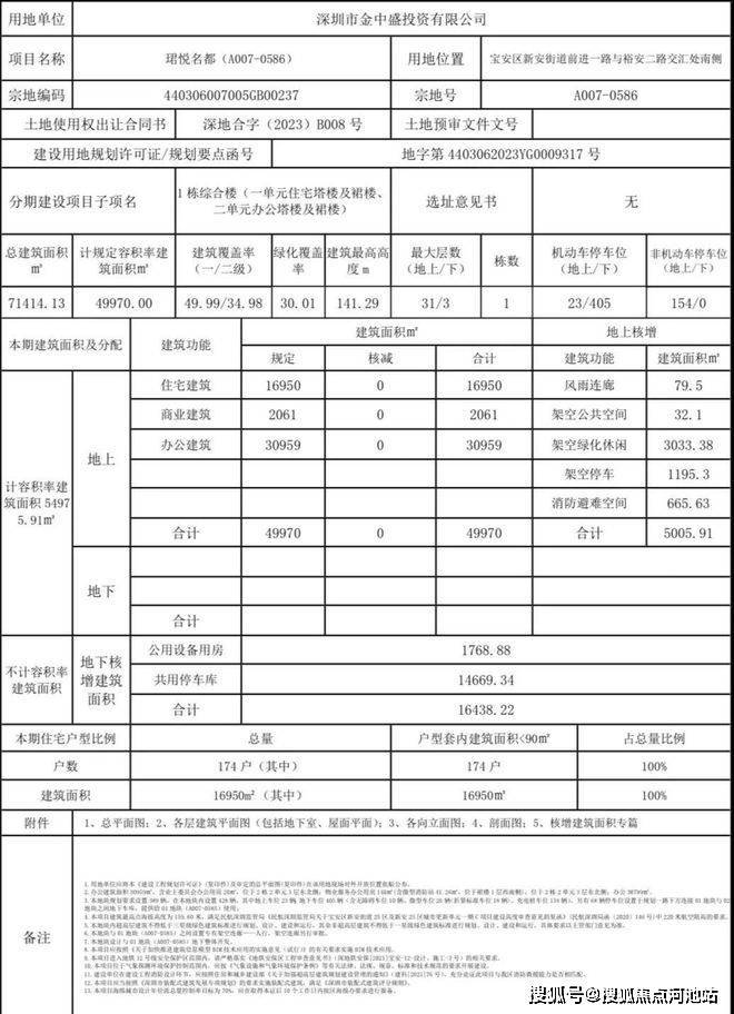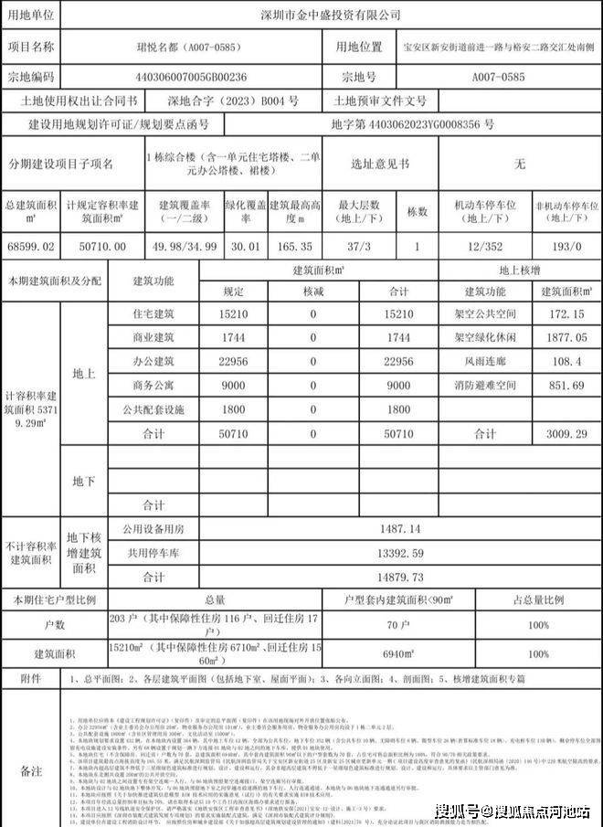 2024年1月,深圳市宝安区城市更新和土地整备局公布新安街道珺悦名都(A007-0585、A007-0586)两地块《建设工程规划许可证》及总平面图的通告。