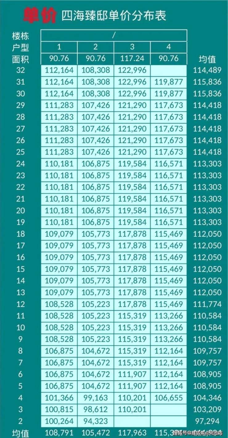 招商四海瑧邸本次开盘推出共120套90-117㎡ 3-4房住宅,单价9.4-12.3万/㎡,总价区间856-1422万,下面是备案价表,更多详情欢迎咨询南山四海瑧邸售楼处电话:400-811-3080,中介请勿扰。