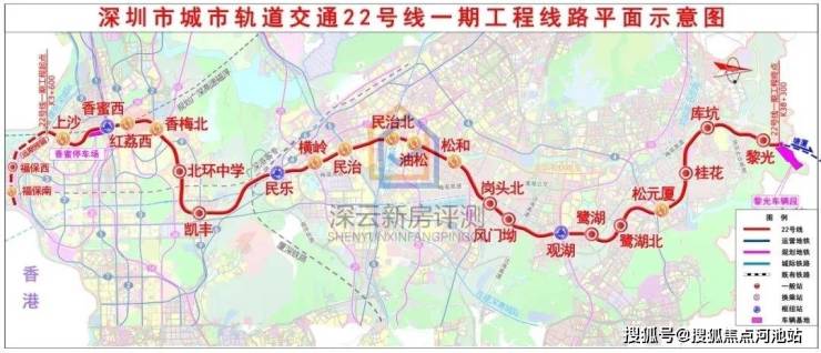 22号线鹭湖站在建,始于龙华黎光站,途经龙岗区,终于福田上沙站,开通后到福田仅需45分钟。