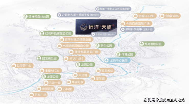 项目规划了9班幼儿园(建设中),和配置有36班九年一贯制书香学府、东兴外国语学校,更是临近全龙岗排名第三的“魔法高中”科高龙岗分校,涵盖了从小学到高中的9+3年全周期学制,实力学府雄厚师资。