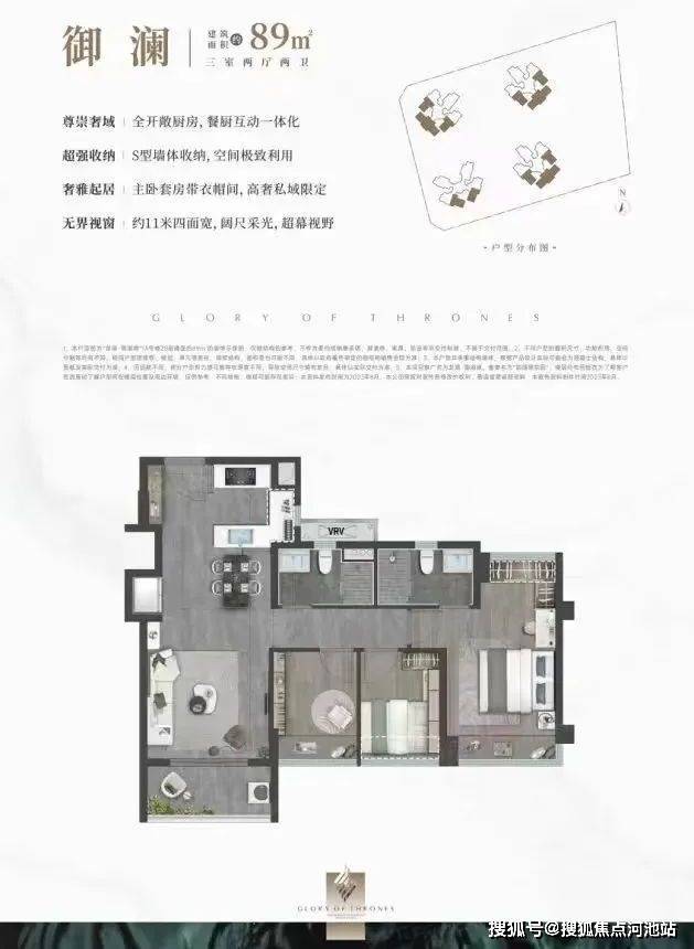 89㎡的3房2厅2卫,得房率:78.99%(不含赠送),有西北、西南、东北、东南4个朝向。