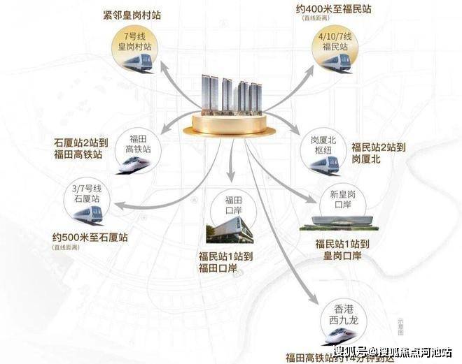 福田中轴的地铁网络是全深圳最发达的,「卓越缦悦」楼下就是地铁西丽线(7号线)皇岗村站,贯穿南山——福田——罗湖。皇岗村站至往西一站是石厦站,可换乘3号线至龙岗大运,往东一站是福民站,能便捷换乘4号线至龙华,或10号线至坂田平湖。