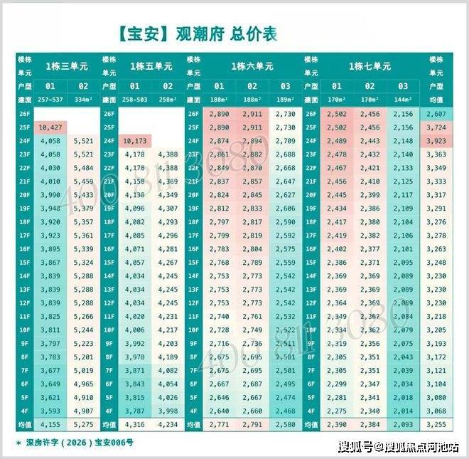 首推1栋3单元、5单元、6单元、7单元(折后价格表在下文)