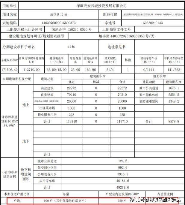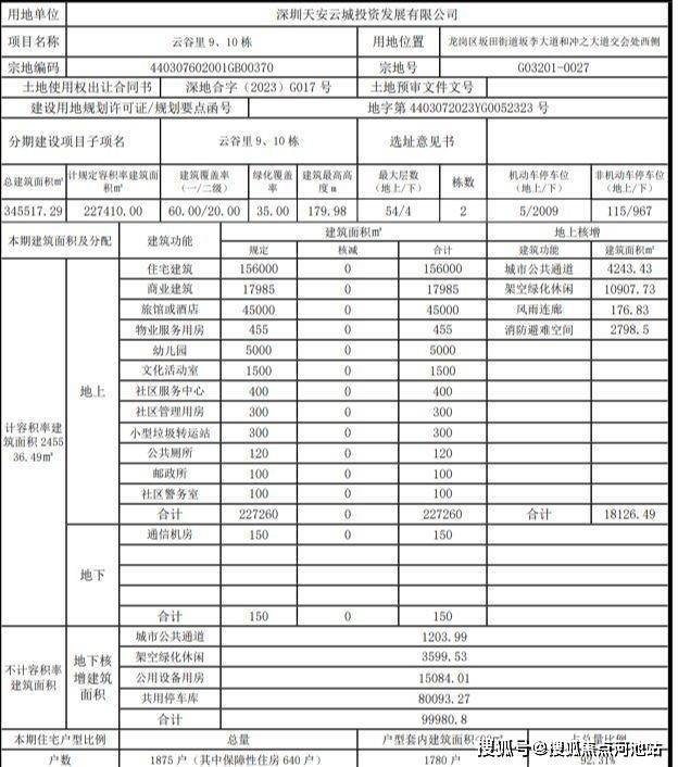 再来看一下天安云谷首推1-2栋他的这期规划,容积率6.32,规划982户,停车位1500个,四梯五户,已经两梯两户设计,总层高45-51层,楼间距20-50米左右,整体算是偏拥挤,所以说这个数据作为豪宅价卖确实有点草率了