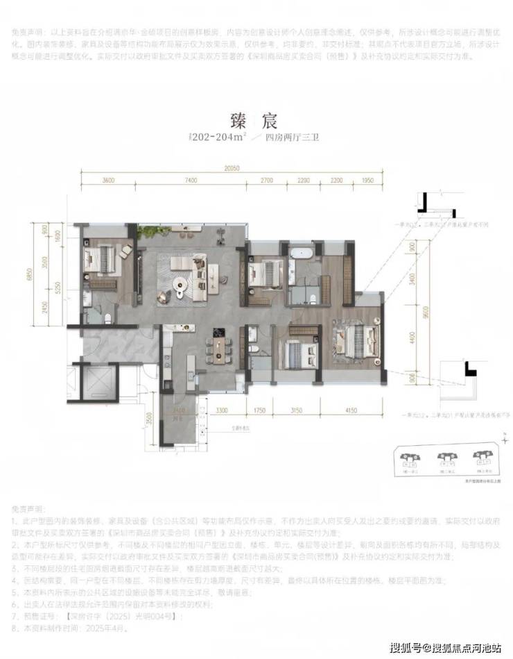 204㎡的4房3卫,折后总价1086-1217万/套,折后单价5.43-5.99万/㎡。