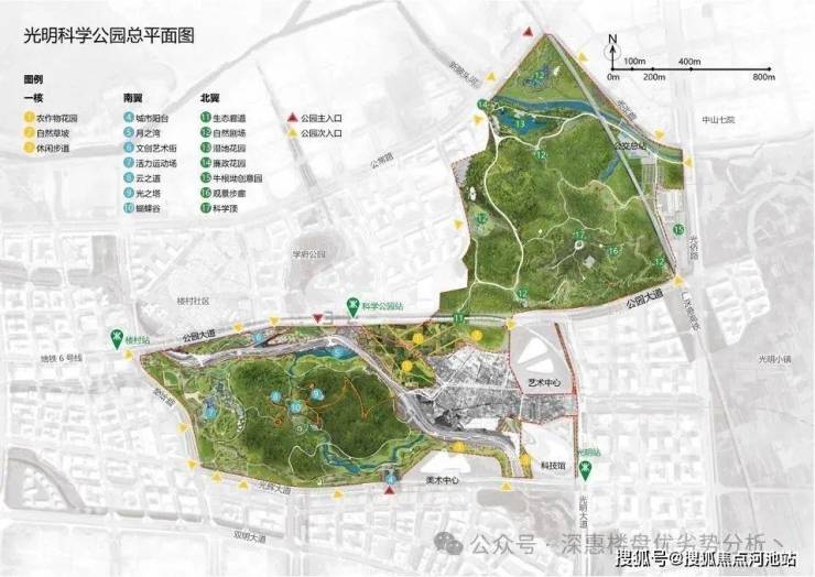 科学公园片区还规划了科技创新文化集群,未来将联动区域内的产业园区(如凤凰城科技园)形成产学研一体化生态。此外,光明城高铁站4站可达,便捷对接南山科技园、留仙洞总部基地等产业高地,进一步强化产城融合优势。
