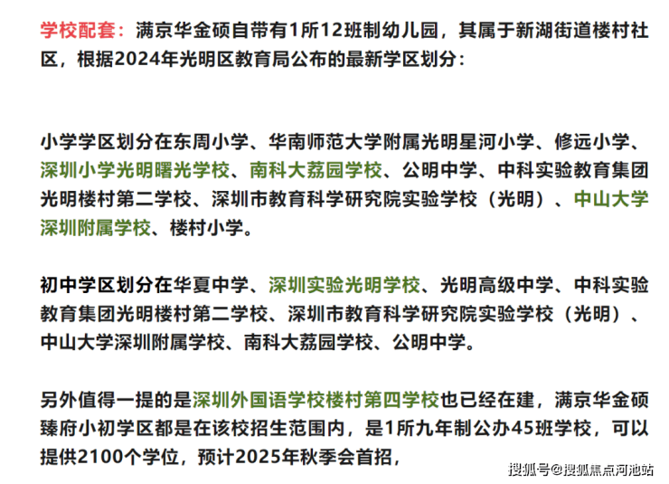 满京华金硕臻府,位于深圳光明区光明科学城“一心两区”的核心区域,紧邻占地208万平方米的科学公园,属于光明规划中“最宜居、居住板块最大”的片区。项目北侧与科学公园仅一街之隔,东、南侧为深圳小学光明学校狮山校区及初中校区,周边市政配套规划密集,如深圳科技馆新馆、国际美术馆等均在建设中,预计2026年前全面落成。