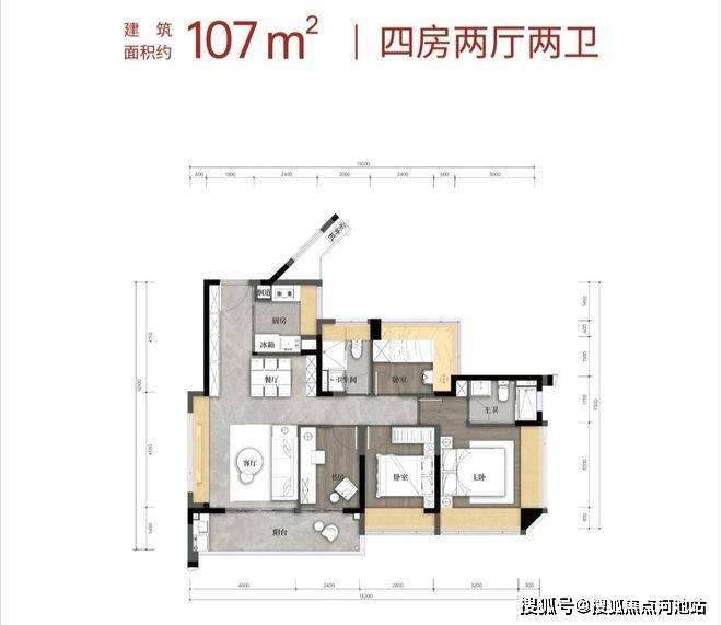 建筑面积约107㎡户型(竖厅)-4房2卫