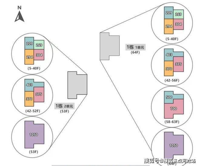 · 低区5F起(150米以内)是约209-304㎡四房以上大户型;