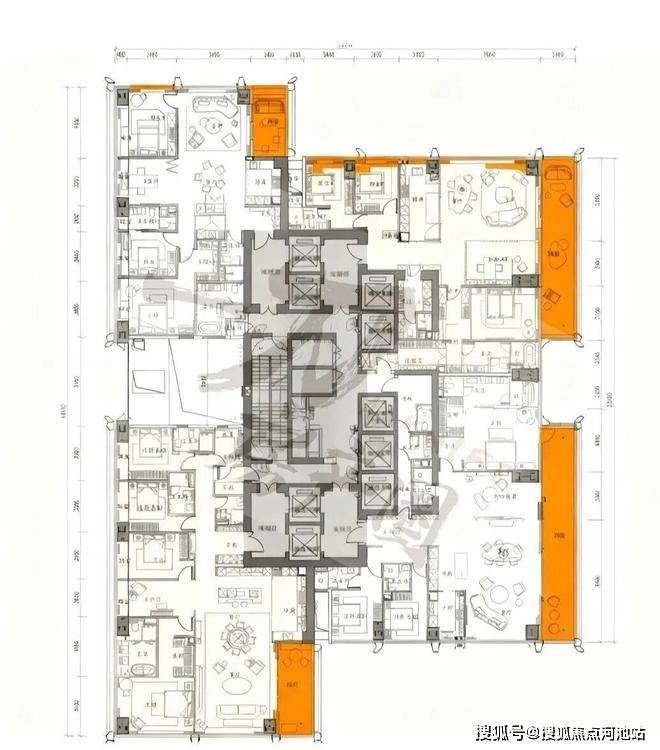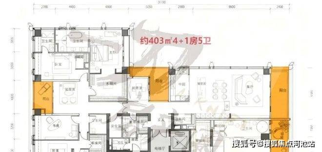 · 高区42F起(150-200米)是约370-375-403㎡4+1房五卫+家庭厅+家政套间;