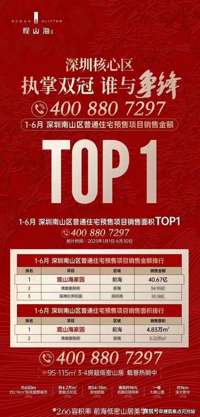 最新消息:万众期待的南山前海观山海4栋1-2单元楼王138平米即将开盘,总层高17层,2梯2户,本次总房源仅64套,预计备案价10万/㎡,参考之前折扣在91-92折!今年上半年南山成交第一,销售总额排第二,深圳罕有2.66容积率,超底密山居,自带强势吸粉力!(诚意登记验资200万)预计7月底拿证并开盘入市!