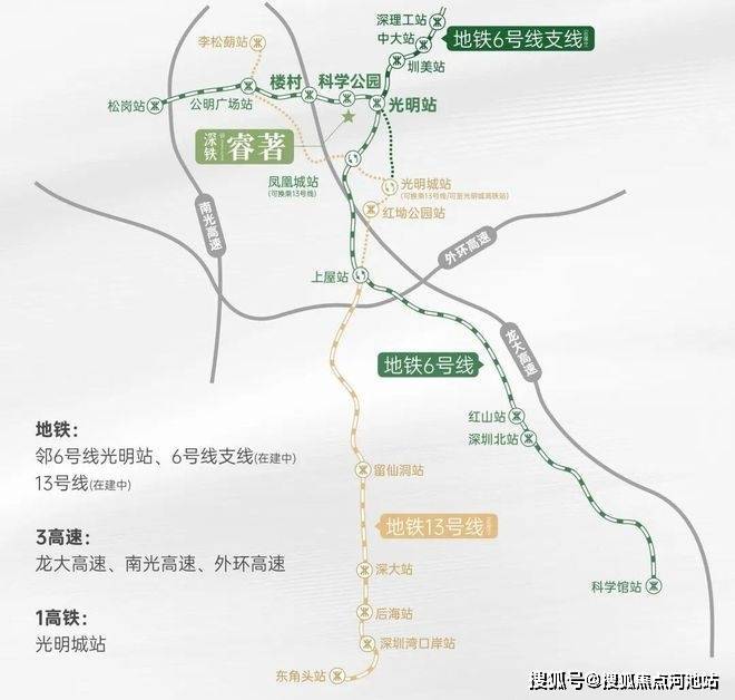 3地铁:邻6号线光明站、6号线支线 (在建中)、13号线 (在建中)