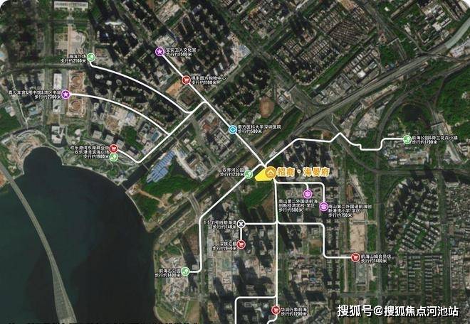 海晏府周边公园、学校、地铁、医院配套非常方便,步行都在800m内。只是大型购物中心需要步行1公里多,等前海国际枢纽中心投入使用后交通和商业会得到极大提升。