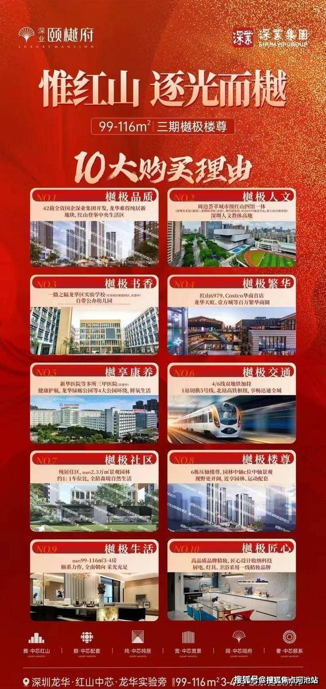 深业置地,深业集团旗下专注于商业地产开发的大型房地产企业,从深业上城到颐湾府、颐泽府、颐瑞府,每一部作品皆是城市标杆所在。如今,深业置地联袂龙华安居,落子红山中芯最后土地珍藏,敬献龙华时代封面,以非凡著作迭新深圳人居品藏。