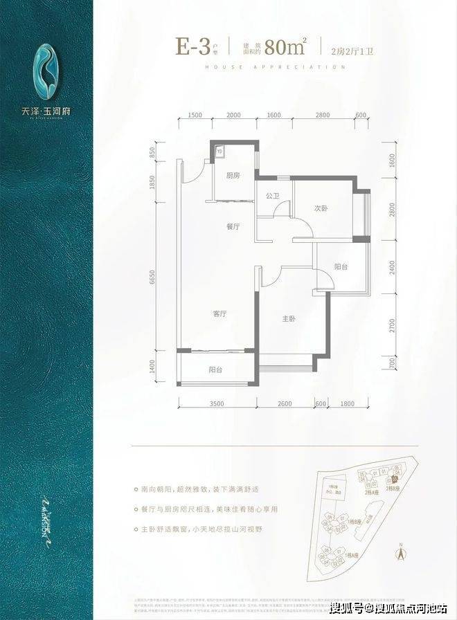 V型塔楼布局,南向阳光户型,约80%高实用率,双阳台,光明罕有绝版户型。建面约80-143㎡河岸美宅,赠送高标准绿建简装,向往的生活在这里触手可及。
