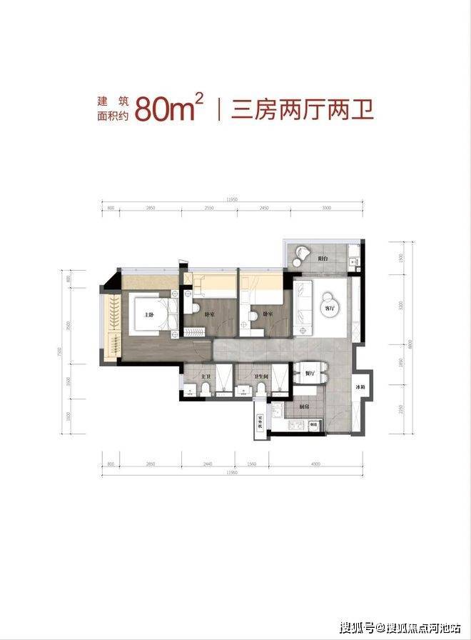 ✔️04户型80㎡三开间三房两卫