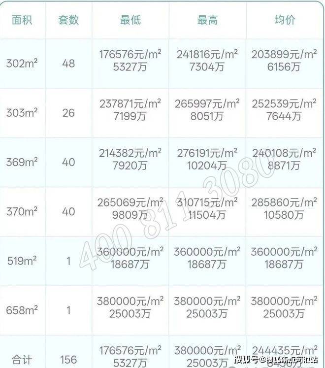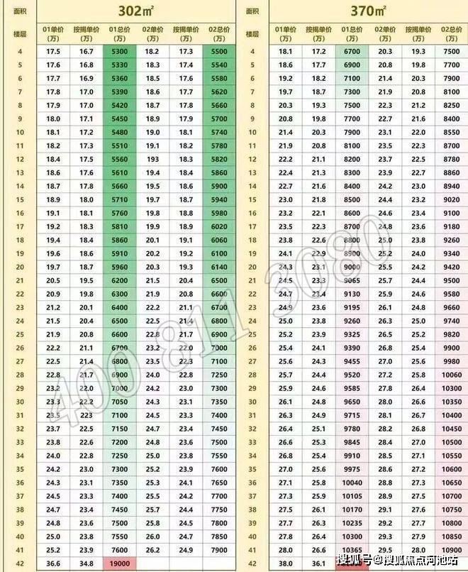 首期302㎡喝370㎡户型备案价格表如下