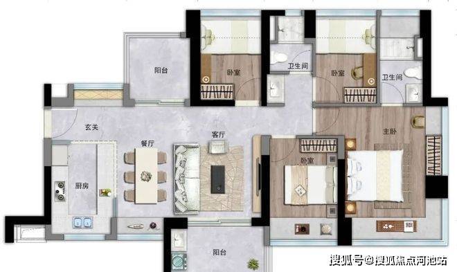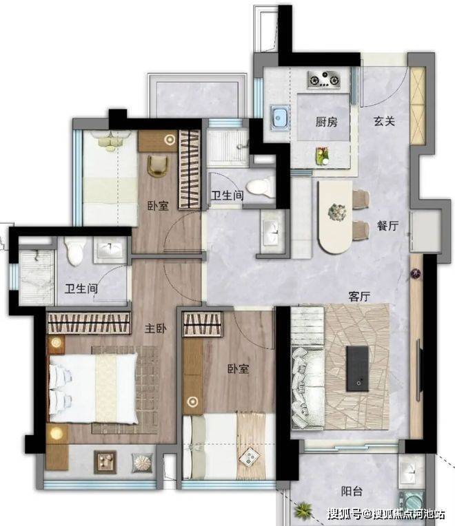 建筑面积约63-112㎡二至四房,新规产品设计,高使用率,空间更实用,欢笑更从容。阳台进深约1.8-2.1m(含墙体),飘窗进深约800mm(部分飘窗),设备平台增加收纳空间,厨房烟道外置增加操作台面。