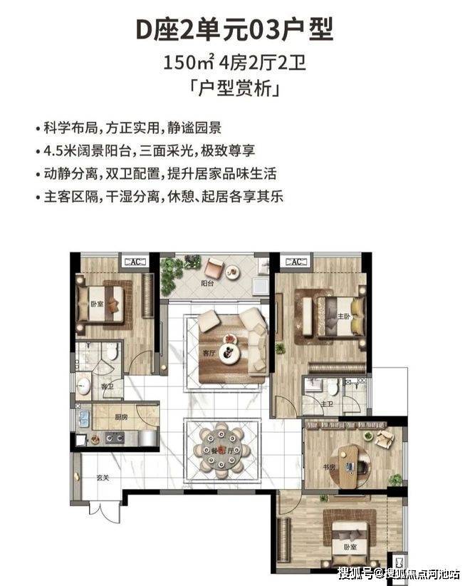 150㎡ 4房户型:单价:4.2万起、总价550万起