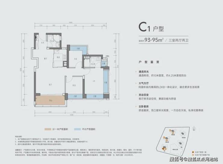 C-1户型 | 建面约93-95㎡三室两厅两卫