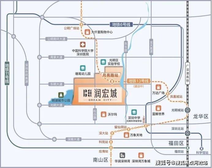 而润宏城作为13号线(在建)的地铁上盖大城,沿线又串联光明城站、西丽站两大枢纽,不仅能快速通勤南山,还能便捷联通福田、宝安、龙华等各大中心,轨道通达能力很强。