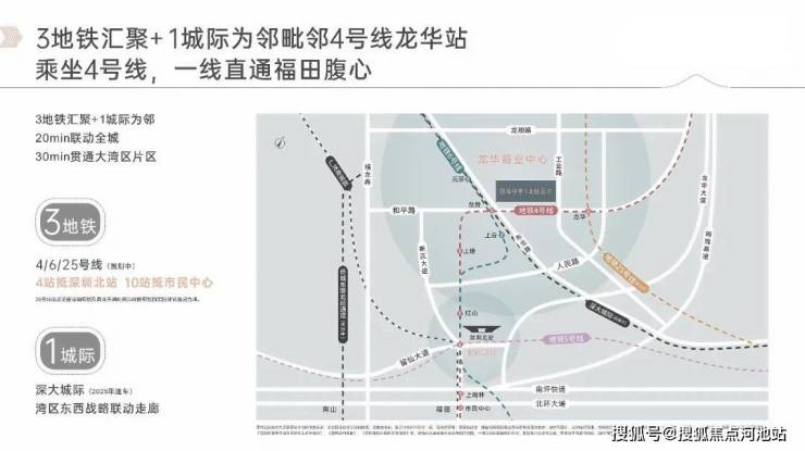 交通配套:项目距地铁4号线龙胜站、龙华站约1.1公里,3站直达深圳北站(换乘5/6号线及高铁)。规划中的18、21、25号线(在建)及深大城际(2025年通车)将进一步提升通达性,快速连接福田、宝安机场等核心区域。周边主干道福龙路、布龙路无缝衔接沈海高速,驾车30分钟覆盖深圳全域。项目还配建公交首末站,实现“地铁+公交+自驾”立体交通网络。