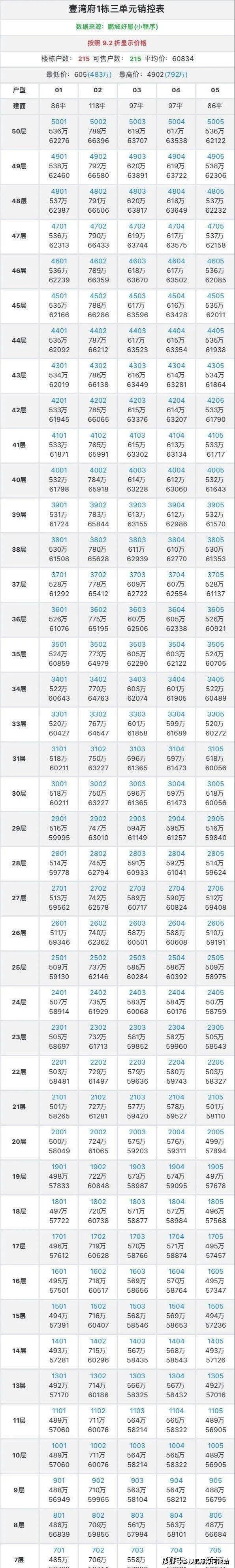 折后总价表