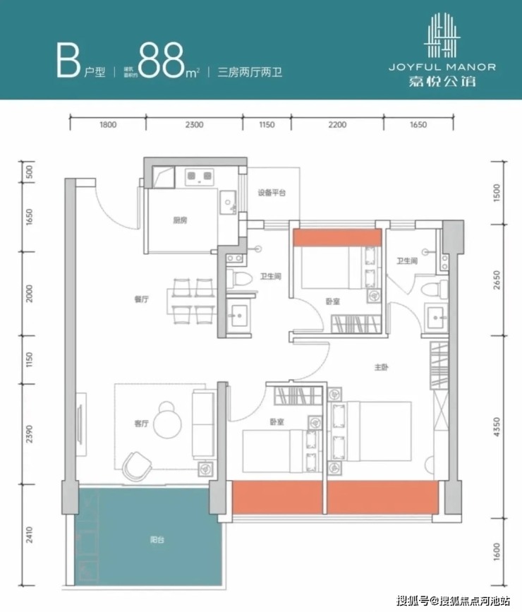 4、嘉悦公馆也是新规之后建设的新楼盘,得房率在整个沙头角的房子而言可以说是最高的,加上赠送后都在86-90%得房率,72平做到了3房1卫,99平做到了4房2卫,确实颇为难得。