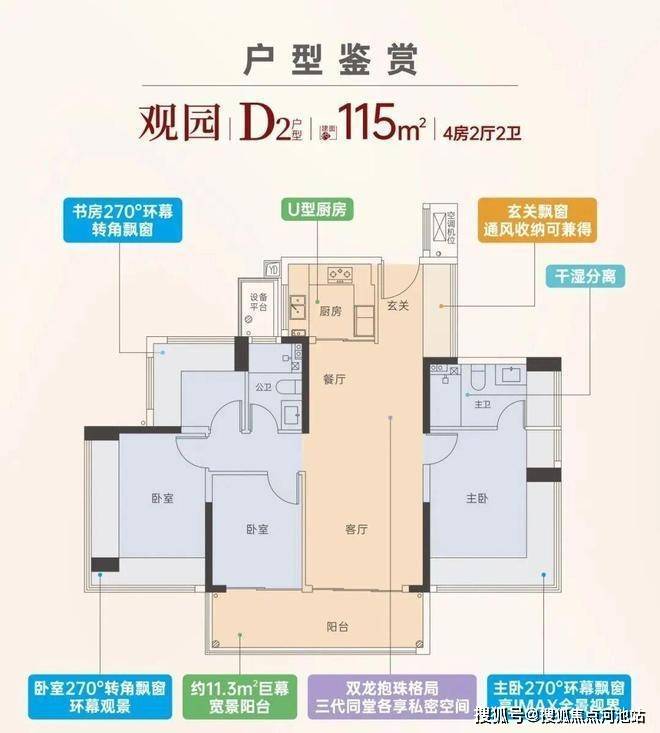 产品方面,大户型产品都用上了南北双阳台设计,主卧沿用新规270°大飘窗,连小户型儿童房也用上双飘窗,通风采光效果绝佳,预计得房率高达100%。