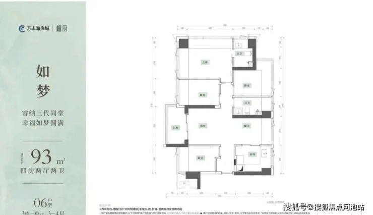 本次推售的万丰海岸城檀府(北地块),总占地面积约1.89万㎡,总建筑面积约17.96万㎡,计容建筑面积约12.87万㎡,容积率6.79,绿化率40%,共由4栋46-47层住宅组成,其中3栋1单元/2栋2单元商品房45层,3栋2单元商品房46层,2栋1单元47层,规划1所12班幼儿园。