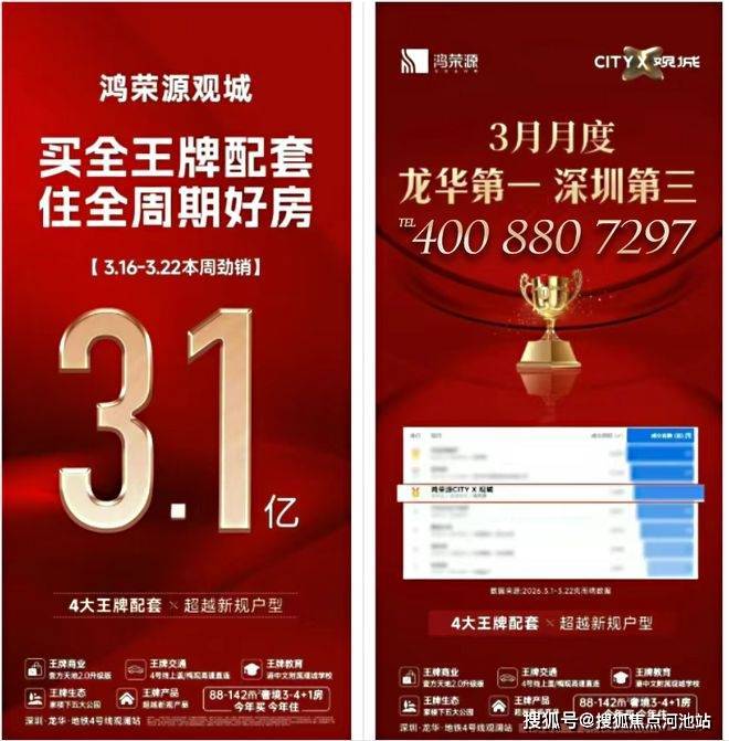 最新消息:深圳龙华观澜网红楼盘【鸿荣源观城】于2026年3月28日上午开盘加推3栋二单元住宅!推出惊喜折扣优惠,折后均价3.7X万/㎡左右,折后单价3.5-4.1万/㎡(过来现场看房提前来电预约(Tel:400 880 7297)可尊享内部团购额外优惠!)