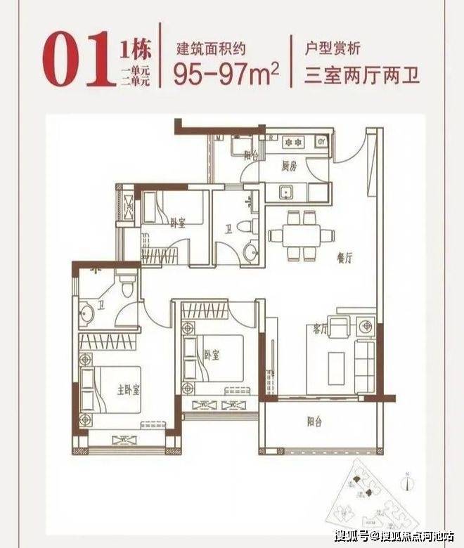 ✅约95/97/103㎡南向三房两厅两卫 (95-97㎡36套 103㎡18套)