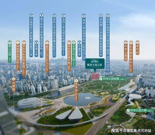 包括科学公园横跨的三座地铁站(楼村站、科学公园站、光明站),以及环伺的深圳科技馆新馆(建设中)、深圳国际美术馆(暂定名,建设中)、艺术中心(建设中)、光明书城、体育馆、科学岛等“五馆一岛”城市级文化地标。