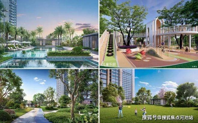 打造约380㎡分龄双泳池、约630㎡儿童乐园、约600米慢跑道、约950㎡阳光草坪四大活力聚场,五大主题社区会客厅,重塑生活新场景。