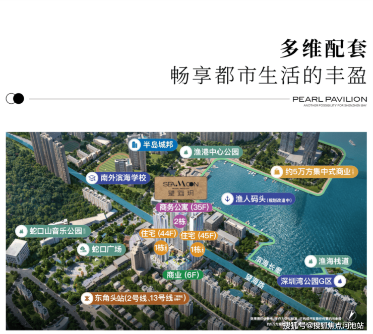 项目位于南山蛇口核心区,该区域新房供应长期处于“断供”状态,使其与中信东角头、半岛城邦五期并称为“蛇口三大新盘”,稀缺性极高。周边环绕半岛城邦等高端豪宅区,能共享区域的成熟配套。商业上,除了自带约1万㎡商业,步行可达海上世界、K11等高端商圈。教育方面,划片育才集团太子湾学校,享有集团化办学的资源。生态上,滨海栈道、女娲公园、在建的深圳歌剧院等休闲文化场所均在步行范围内。