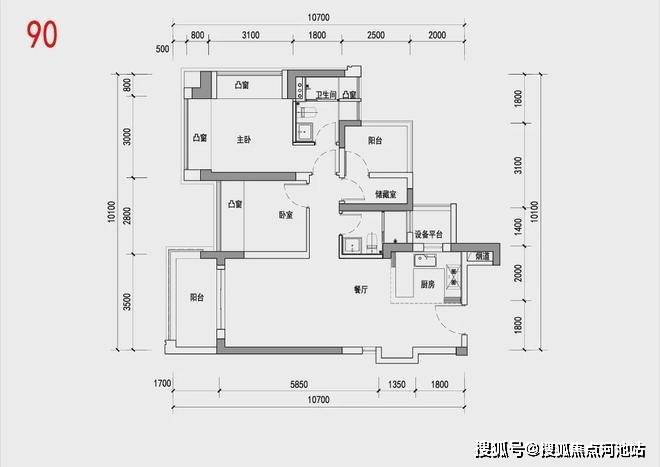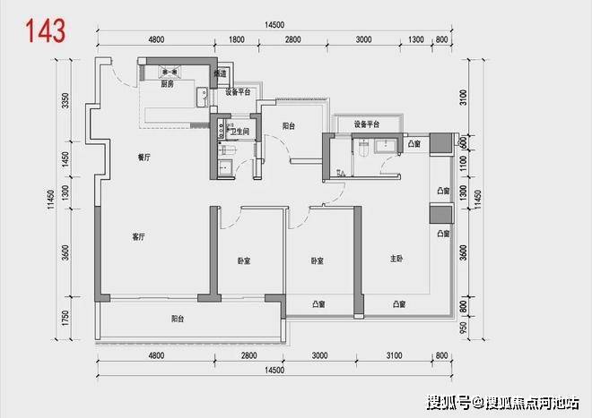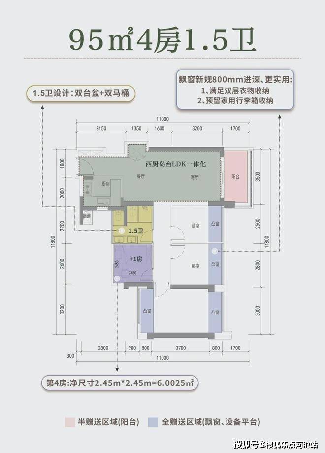 1、 首先是阳台进深<2.4米,算全赠送,多阳台设计重出江湖,为“多出一室”留出空间余量;