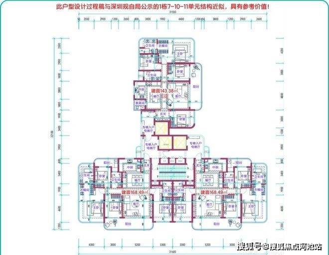 7单元,24层,层高约3.15米,3梯3户,约143/168平,可售69套。
