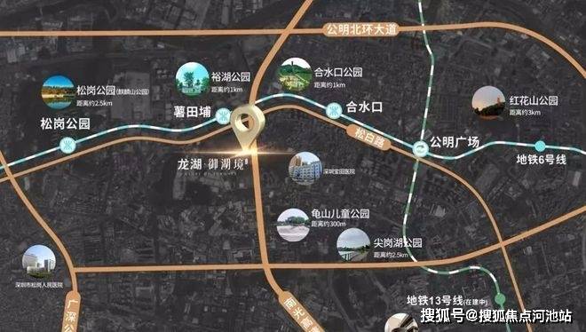 龙湖御湖境(深圳光明)项目位于公明西环大道与松白路交汇处,距地铁6号线薯田埔站仅300米(百度测距),两站接驳13号线(公明广场站在建),三站换乘11号线(松岗站)。地铁13号线跨越南山、宝安、光明三区。串联光明科学城、南山科技园,留仙洞总部基地、深圳湾口岸、后海中心等核心区域,被誉为“最强科技地铁线”。